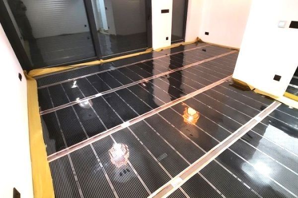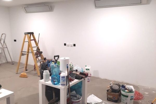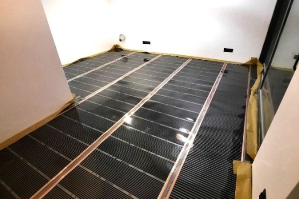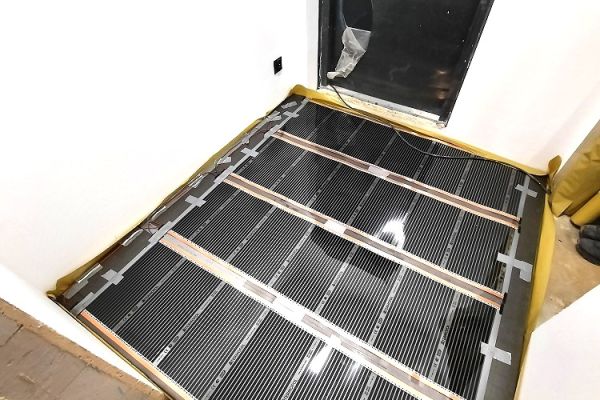 Pierwszy etap montażu ogrzewania na podczerwień w budynku garażowo-gospodarczym. W garażu zamontowane dwa promienniki wysokotemperaturowe o mocy 1800W każdy, a w pozostałych pomieszczeniach folia grzewcza podłogowa o mocy 80W/m2. Część pomieszczeń sterowana termostatem z aplikacją Wi-Fi. Kolejny etap, to montaż systemu grzewczego na poddaszu, który odbędzie się w późniejszym terminie. Jest to zaleta systemu de centralnego.