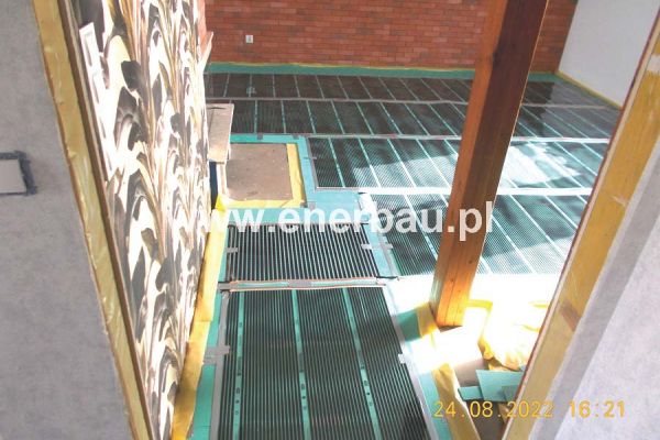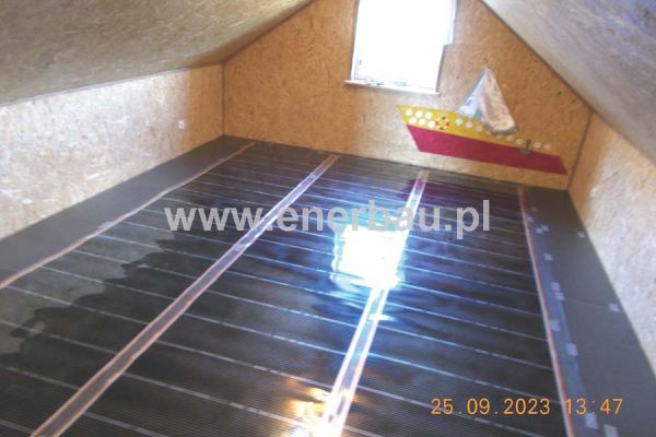 W nowo wybudowanym domu jednorodzinnym w Osieku Wielkim zamontowaliśmy w dwóch etapach system grzewczy na podczerwień. Inwestorzy zdecydowali, że w pierwszym etapie montujemy ogrzewanie na parterze, a rok później na poddaszu. Założyliśmy folie grzewcze w podłogach „pływających” i maty grzewcze w podłogach ceramicznych (wiatrołap, łazienki). Oczywiście każde pomieszczenie posiada niezależne sterowanie temperaturą.
