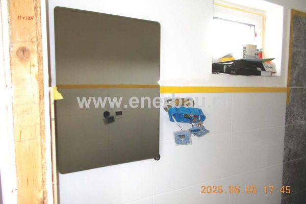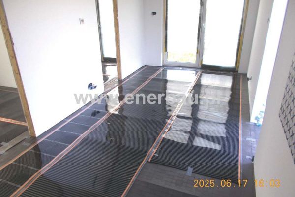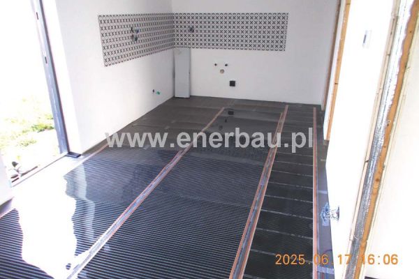 W niewielkim modułowym domku o powierzchni 34 m2 (salon z aneksem kuchennym, dwie sypialnie i łazienka) zamontowaliśmy folie grzewcze podłogowe o mocy 80W/m2, lustro 400W na podczerwień w łazience i 3termostaty (w tym jeden z funkcją Wi-Fi) regulujące temperaturę wg potrzeb. Zastosowanie naszego systemu ogrzewania na podczerwień pozwala użytkownikom na korzystanie z tego budynku przez cały rok, a bezobsługowość i niskie koszty użytkowania są niewątpliwą zaletą tego systemu.